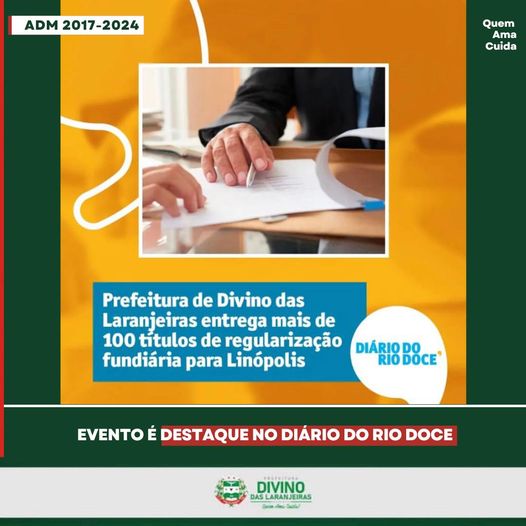Entrega das Certidões de Regularização Fundiária pela Prefeitura de Divino das Laranjeiras repercute na imprensa.