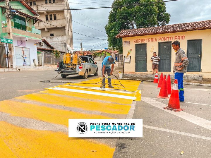 Pescador: Prefeitura realiza pintura de faixas de pedestre nas ruas da cidade! 🚶🏼♂️