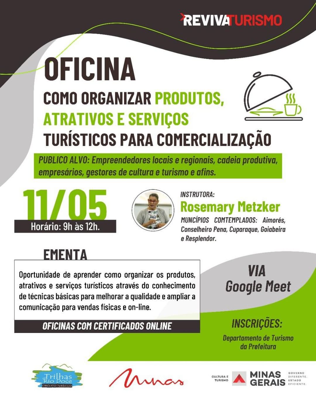 A Secretaria de Cultura e Turismo convida os empreendedores locais e outros do ramo para oficina que acontecerá no dia 11 de maio de 2022!