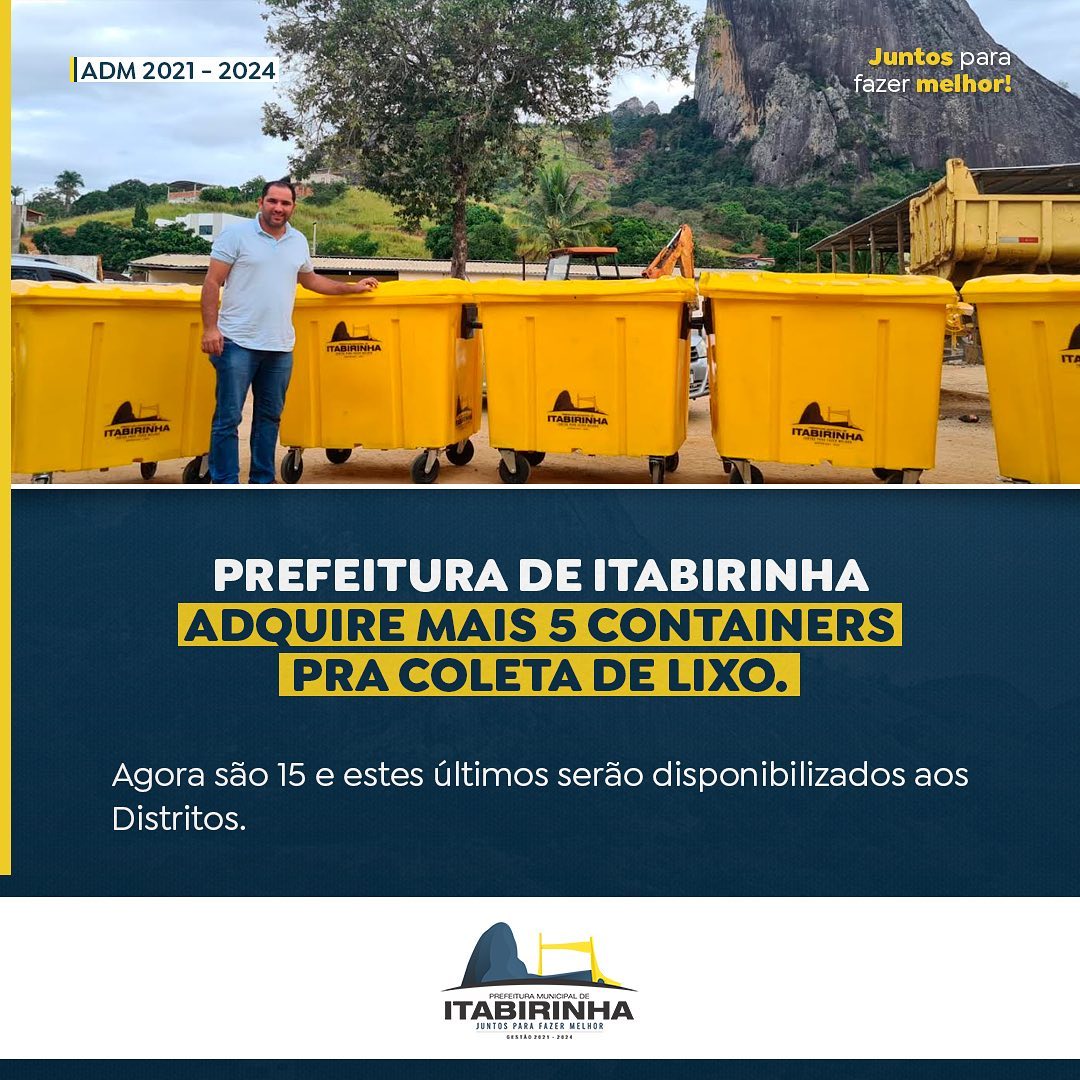 Prefeitura de Itabirinha: Adquiridos mais 5 containers parra coleta de lixo