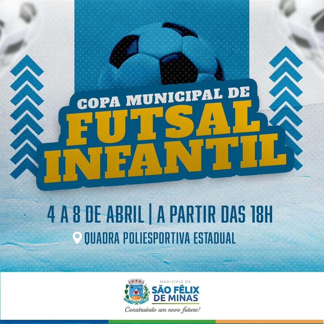 Vem aí a Copa Municipal de Futsal Infantil, acompanhe a programação e venha prestigiar nossas crianças.