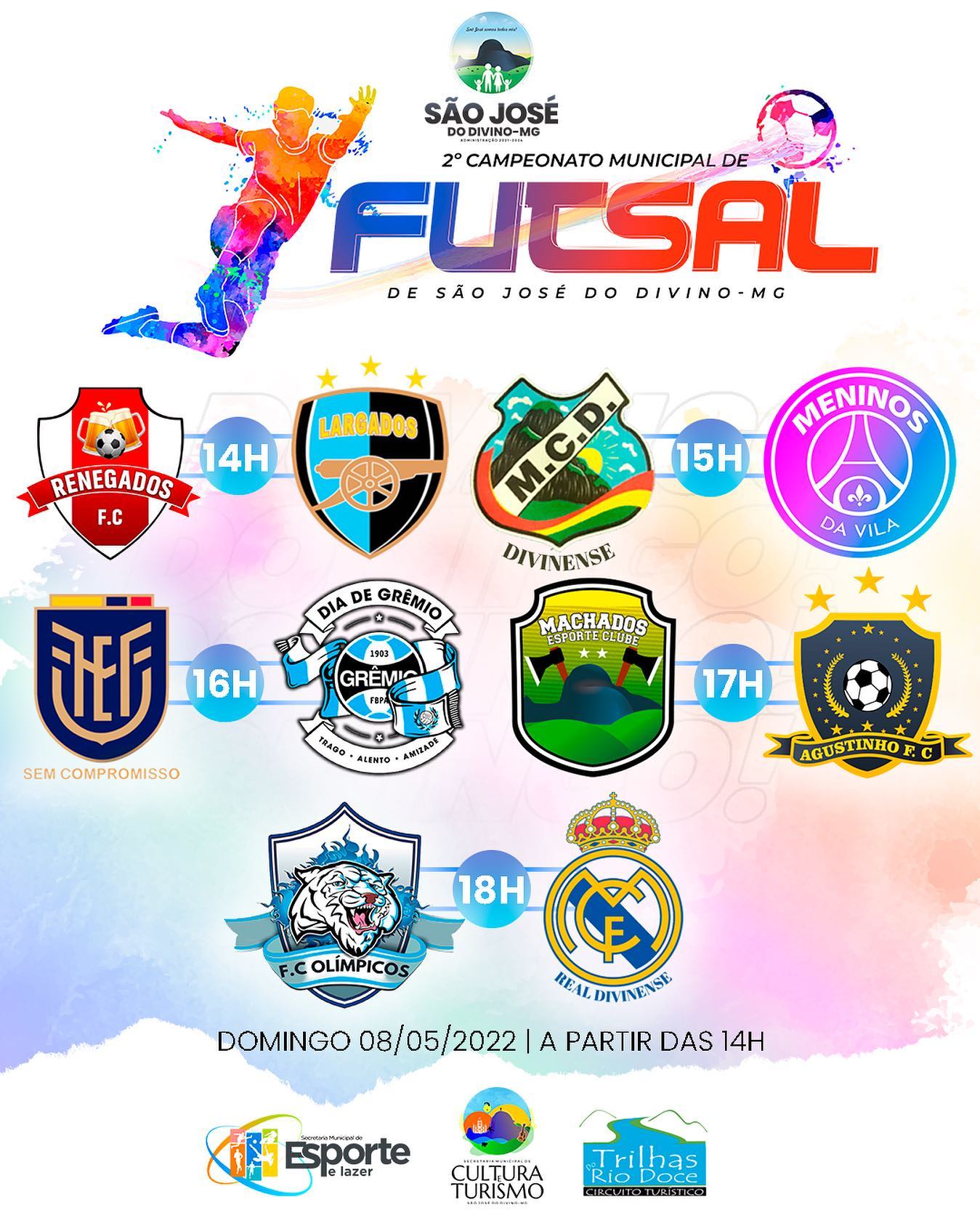 O Prefeito Gêka juntamente com a Secretaria de Esporte e Secretaria de Cultura convida você e sua família para participar do 2º Campeonato Municipal de Futsal de São José do Divino/MG.